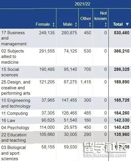 2021/22學(xué)年,商科熱度依舊不減,學(xué)習(xí)商業(yè)和管理專業(yè)的學(xué)生占比最高,達(dá)19%,和去年相比增加增加55,490人;在增加的商科專業(yè)學(xué)生中,76%為就讀授課型碩士的非歐盟學(xué)生。