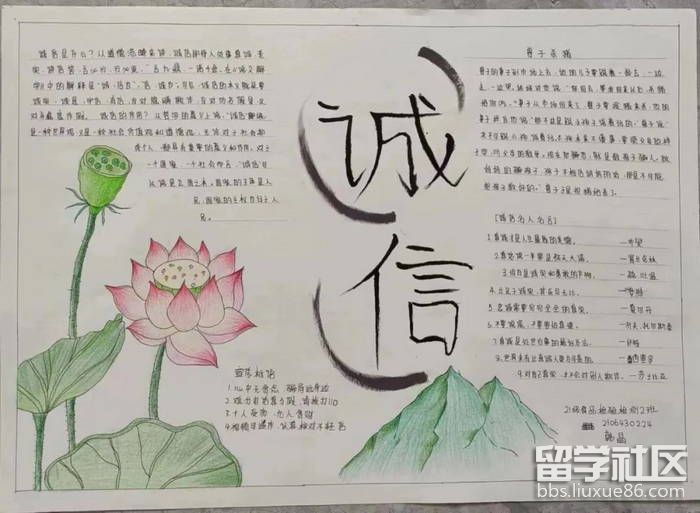 誠(chéng)信是人生的命脈,是一切價(jià)值的根基。誠(chéng)信是立身之本,是個(gè)人必須具備的道德素質(zhì)和品格。誠(chéng)信是人與人之間溝通的橋梁,也是我們通向成功的秘籍。那么大家知道誠(chéng)信手抄報(bào)怎么畫嗎?下面是由出國(guó)留學(xué)網(wǎng)編輯為大家整理的“誠(chéng)信手抄報(bào)圖片大全(精選5張)”,僅供參考,希望能夠幫助到大家。