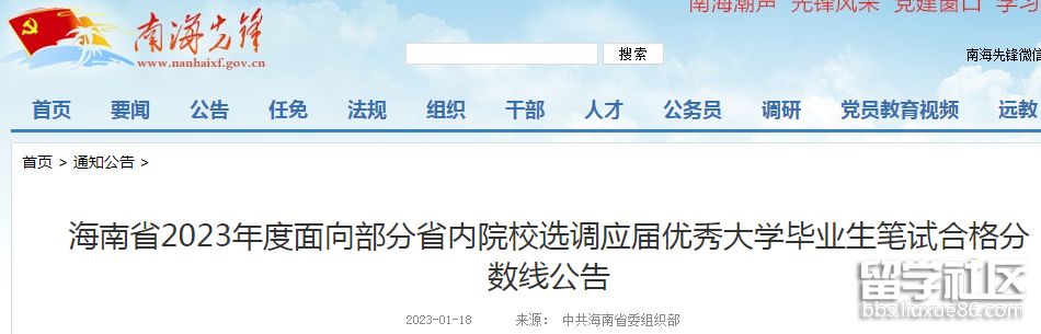 2023年海南選調(diào)應(yīng)屆優(yōu)秀大學畢業(yè)生筆試合格分數(shù)線公布