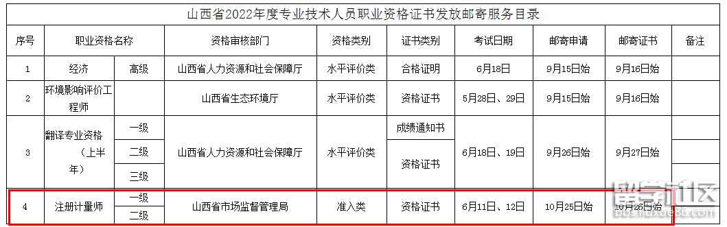 2022年山西注冊計量師考試資格證書郵寄發(fā)放