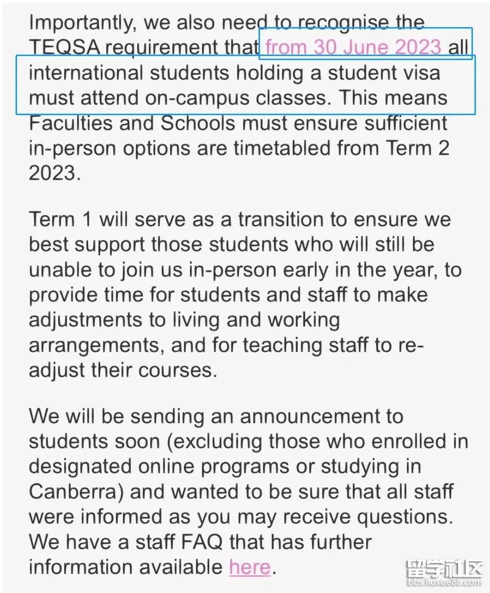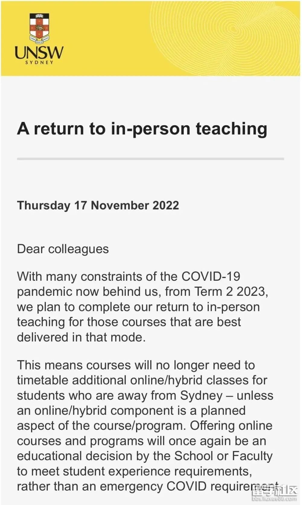 在這個(gè)DDL之下,UNSW已經(jīng)官宣:從2023年第二學(xué)期開(kāi)始,部分課程將強(qiáng)制線(xiàn)下,國(guó)際留學(xué)生需要在2023年6月30日之后抵達(dá)澳洲。
