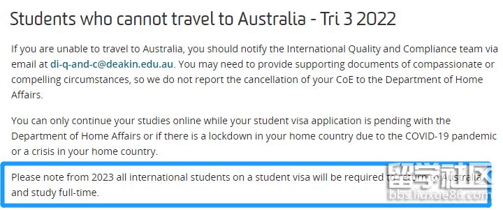 迪肯大學(xué)也更新了2023授課模式:所有持學(xué)生簽證的國(guó)際學(xué)生從今年起就必須強(qiáng)制返校進(jìn)行full-time學(xué)習(xí)。意思從2023 T1開(kāi)始,迪肯就不再提供網(wǎng)課了。