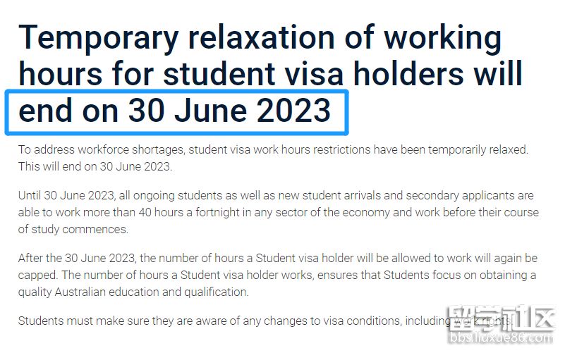 疫情期間的一些concession會(huì)慢慢取消,500學(xué)簽持有者可以無(wú)限時(shí)工作,這項(xiàng)疫情期間豁免的政策將會(huì)在2023年6月30日取消,7月1日起會(huì)重新恢復(fù)每?jī)芍芄ぷ鲿r(shí)長(zhǎng)不超40小時(shí)的限制。