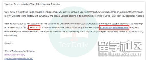 西北大學也明確表示考慮到中國疫情的影響,接受在1月13日前提交的申請,但是注意需要聯(lián)系ug-admission@單獨申請延期。