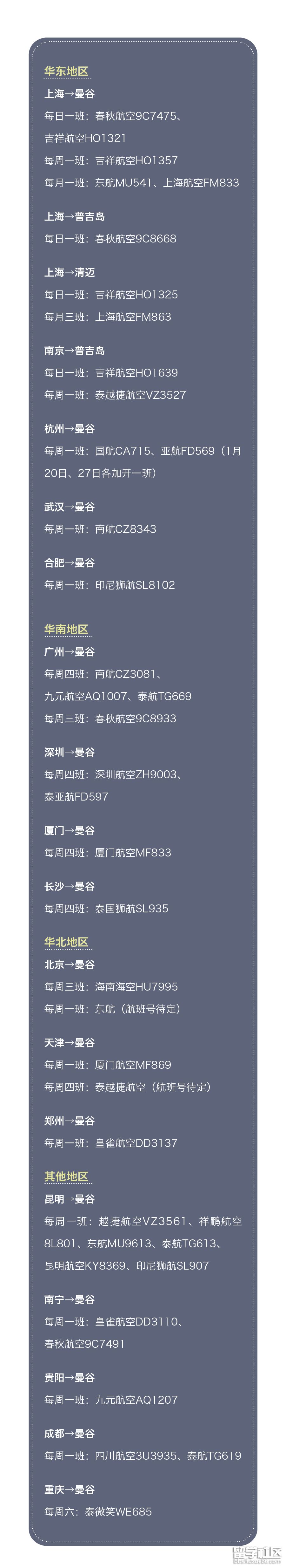 目前,國內(nèi)已經(jīng)有14個城市開通了直飛泰國(曼谷)的航班,每趟航班的頻率大多保持在周一次。隨著中泰雙方出入境政策調(diào)整和國內(nèi)出境游的繼續(xù)開放,可選航班和出發(fā)城市、出發(fā)時間也在逐步增加中,請密切關注消息發(fā)布。