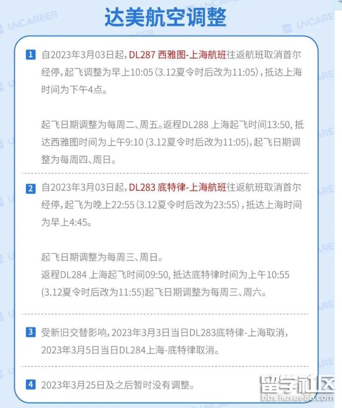 ?? 由于俄烏戰(zhàn)爭(zhēng)的關(guān)系,DL283底特律-上海/AA127達(dá)拉斯-上海不能飛越俄羅斯領(lǐng)空。另外,在北半球西風(fēng)特別強(qiáng)勁的情況下,可能會(huì)減載或臨時(shí)技術(shù)經(jīng)停。