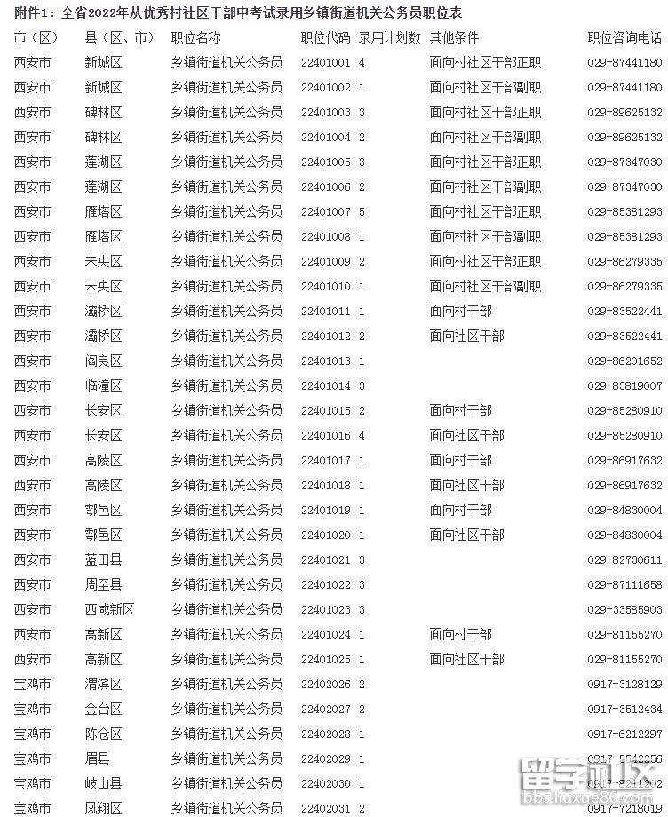 附件:1. 陜西省2022年從優(yōu)秀村社區(qū)干部中考試錄用鄉(xiāng)鎮(zhèn)街道機關(guān)公務(wù)員職位表