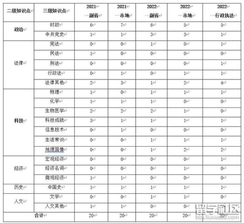 由上表可知,命題人對政治和科技這兩大模塊青睞有加,命題比較密集,其中時(shí)政的考點(diǎn)最多,其次生物醫(yī)學(xué)、科技成就、地理國情、法律其他也比較多。所以,考生在考前對這幾個(gè)占比高的模塊要加大復(fù)習(xí)的力度。