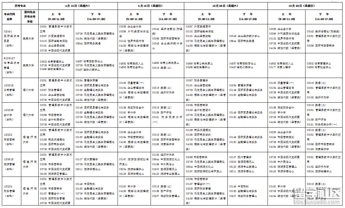 附件:2023年4月和2023年10月福建省高等教育自學(xué)考試開考專業(yè)理論課程考試安排表