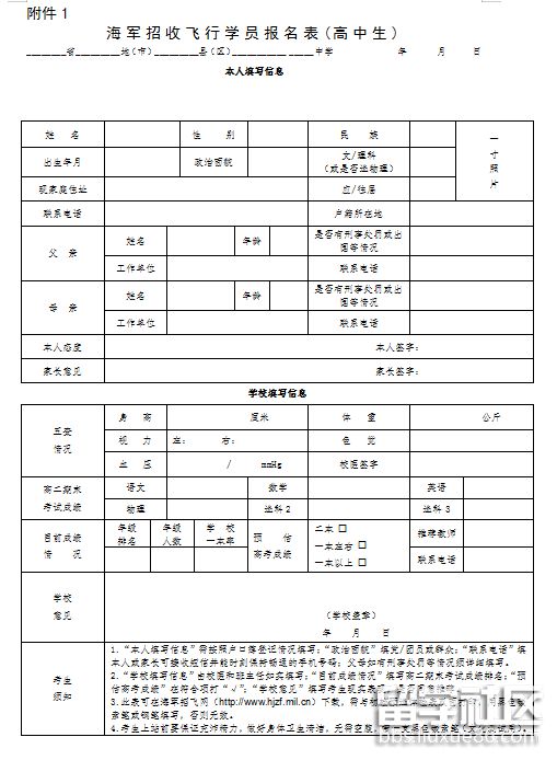 附件:1.海軍招收飛行學(xué)員報名表(高中生)
