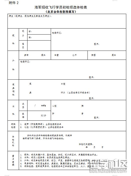 2.海軍招收飛行學(xué)員初檢預(yù)選體檢表