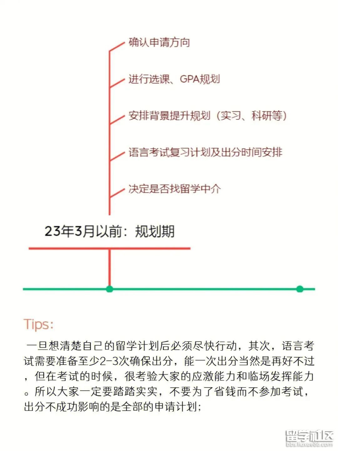 這個(gè)階段大家可以先確認(rèn)自己的申請(qǐng)方向,然后根據(jù)申請(qǐng)方向來確定后續(xù)的一些事項(xiàng),比如說選課、GPA規(guī)劃、實(shí)習(xí)、科研、語言考試計(jì)劃、是否找留學(xué)中介等等;