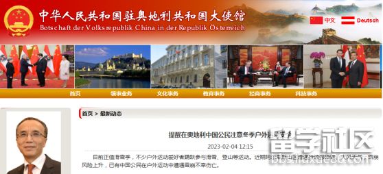 2月4日,駐奧地利大使館提醒旅居奧地利和前來旅游的中國公民:冬季山地戶外運(yùn)動(dòng)具有一定的危險(xiǎn)性,請務(wù)必做好充分準(zhǔn)備,加強(qiáng)安全措施,遵守安全規(guī)則,避免安全風(fēng)險(xiǎn),確保生命安全。