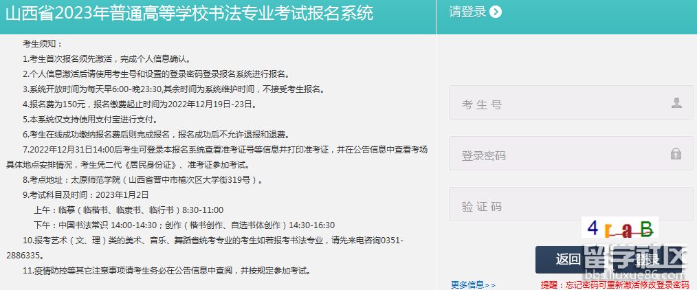 2023年山西書法專業(yè)統(tǒng)考考試報名系統(tǒng)入口