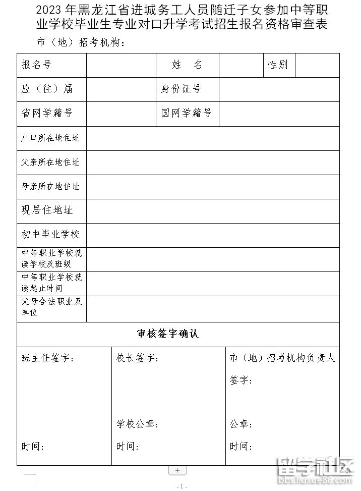 附件三:2023年黑龍江省進城務工人員隨遷子女參加中等職業(yè)學校畢業(yè)生專業(yè)對口升學考試招生報名資格審查表
