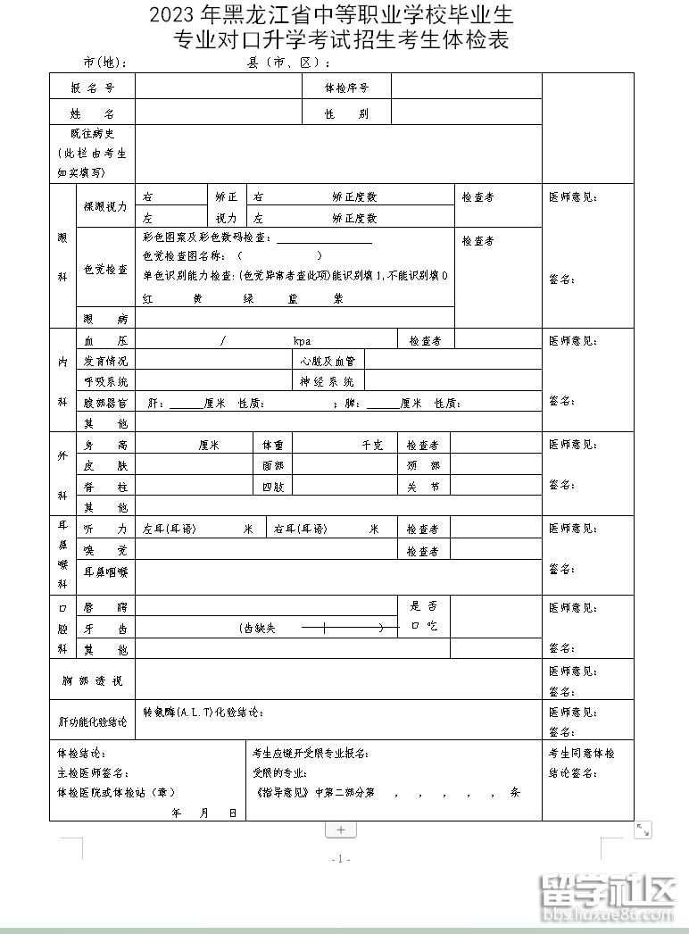 附件二:2023年黑龍江省中等職業(yè)學校畢業(yè)生專業(yè)對口升學考試招生考生體檢表