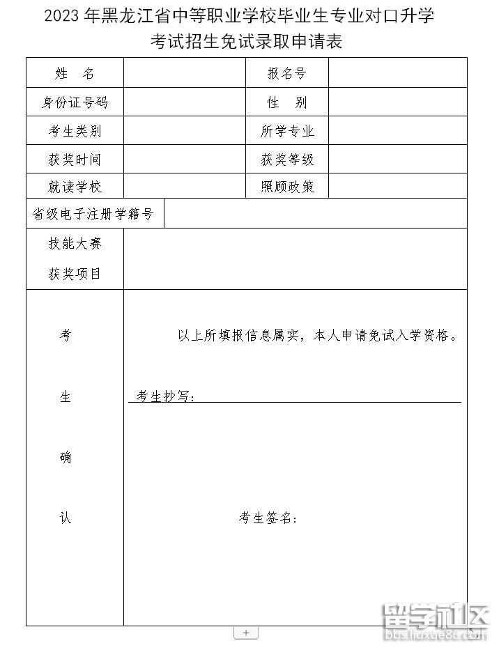 附件五:2023年黑龍江省中等職業(yè)學校畢業(yè)生專業(yè)對口升學考試招生免試錄取申請表