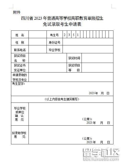 附件:四川省2023年普通高等學(xué)校高職教育單獨(dú)招生免試錄取考生申請(qǐng)表