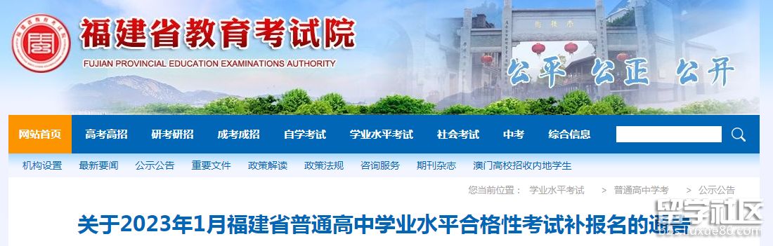 經(jīng)研究決定,我省2023年1月普通高中學(xué)業(yè)水平合格性考試補(bǔ)報(bào)名時(shí)間為2022年11月19日8:00—20日18:00,報(bào)名條件與方法詳見(jiàn)《福建省教育廳關(guān)于做好2023年1月普通高中學(xué)業(yè)水平合格性考試報(bào)名工作的通知》(閩教考〔2022〕17號(hào)),請(qǐng)符合條件仍未報(bào)名的考生盡快報(bào)名,以免錯(cuò)過(guò)報(bào)名時(shí)間。