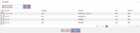 (2)專業(yè)選擇:選擇-輸入專業(yè)名稱-查詢-勾選-確定