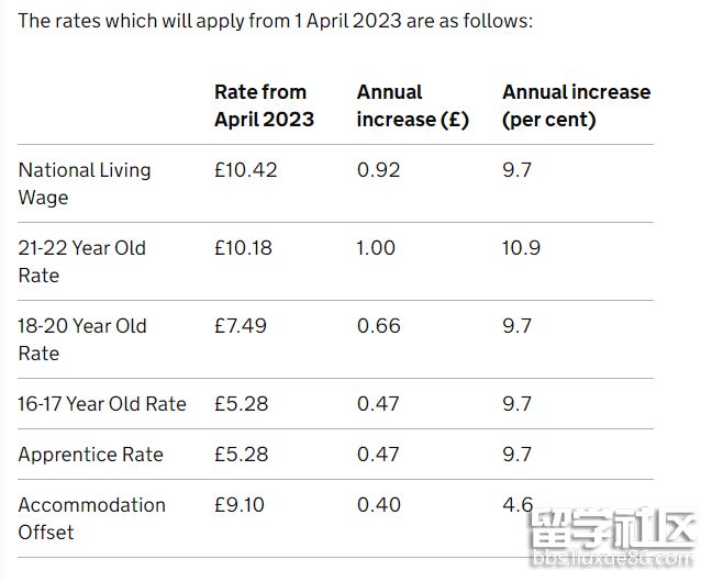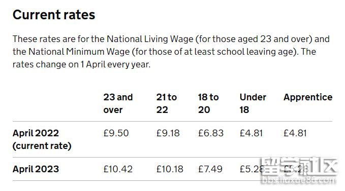 根據(jù)英國的法律規(guī)定,所有在英國工作的留學生獲得的時薪不能低于最低工資標準(National Minimum Wage)。根據(jù)英國將在2023年4月1日施行的工資標準,23歲及以上員工最低時薪£10.42,21-22歲的員工最低時薪£10.18。