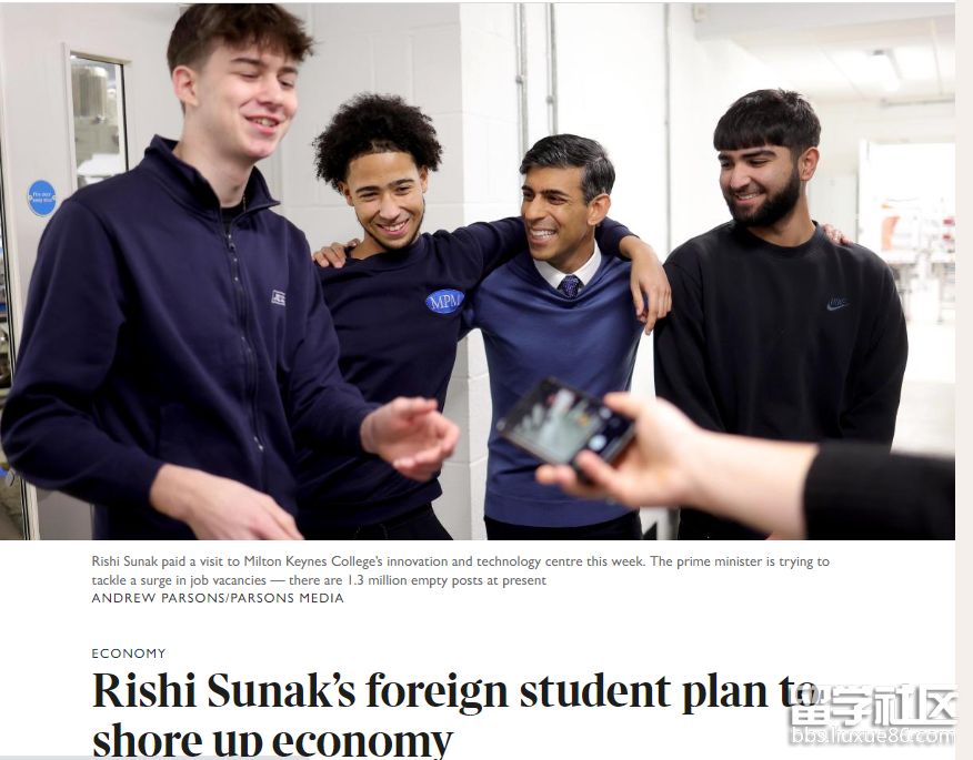 據(jù)悉,在2022年抵達英國的110萬移民中,國際學生占476,000人,其中來自印度的最多,包括128,000名學生和33,000名家屬。英國首相蘇納克表示:“目前有130萬個職位空缺,比新冠大流行前多了近50萬個,企業(yè)急需工人?!?BR>