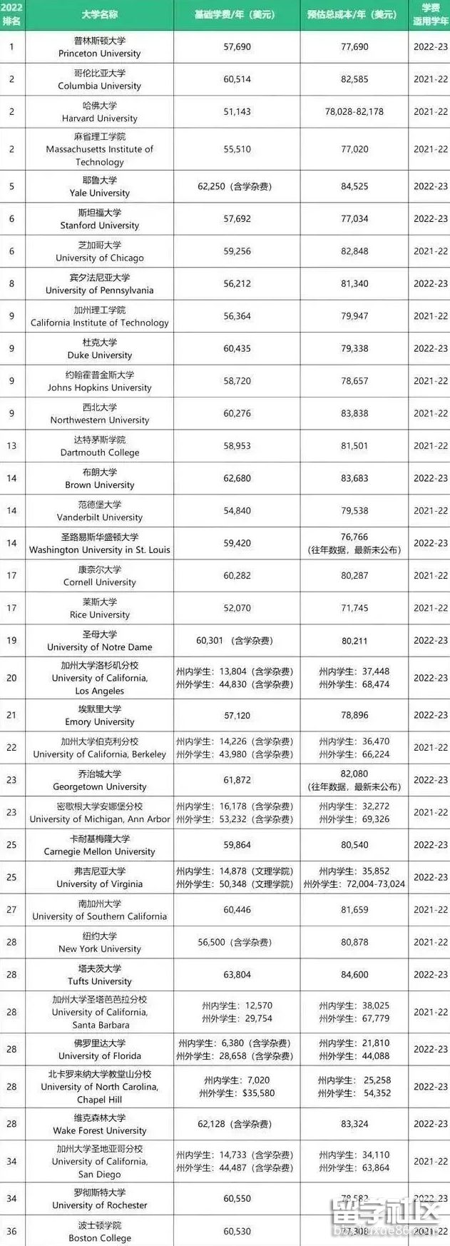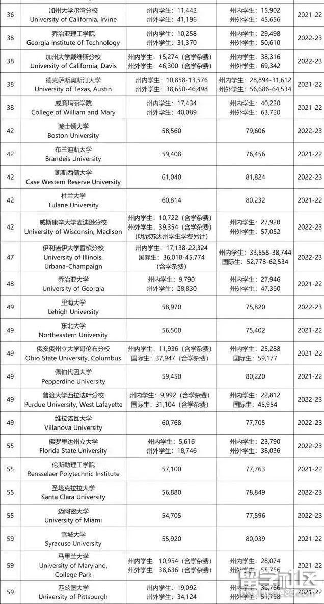 2022-2023年美國留學(xué)費(fèi)用匯總,各大學(xué)本科留學(xué)費(fèi)用一覽