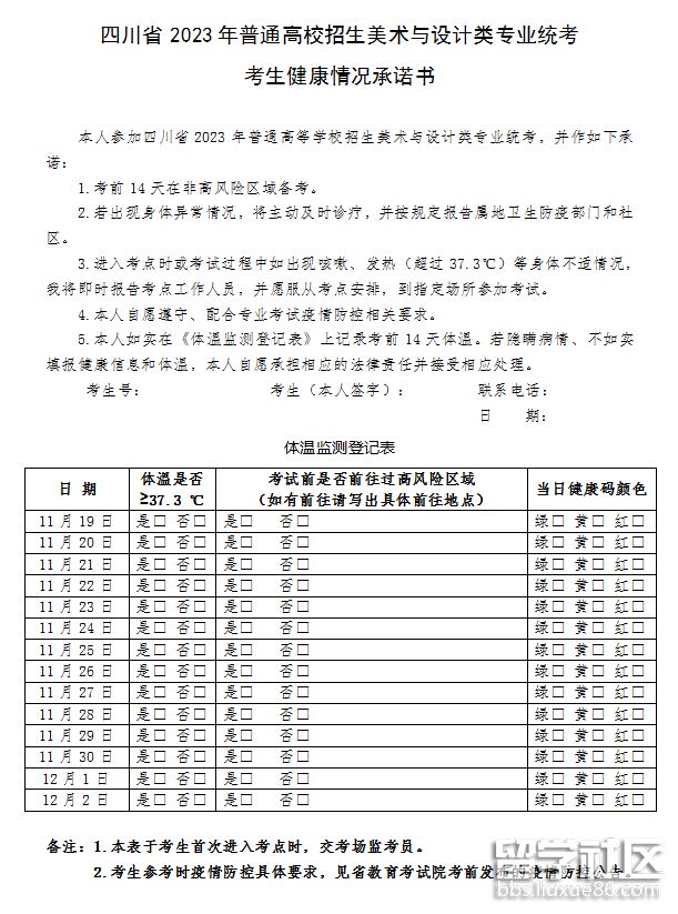 四川2023年美術(shù)與設(shè)計(jì)類專業(yè)統(tǒng)考考生健康情況承諾書