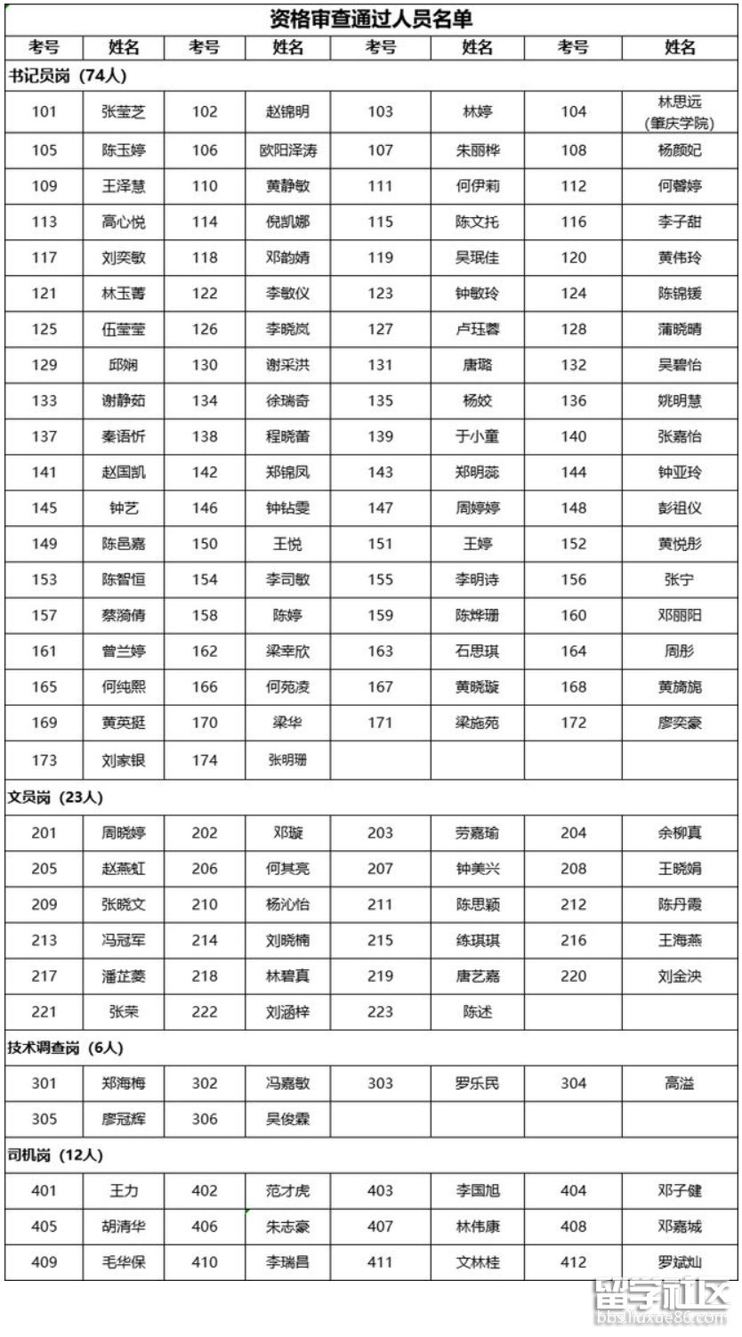 資格審核通過人員(見下圖),其中,報考書記員崗位的考生除參加筆試外,還須參加3月11日下午的打字測試。
