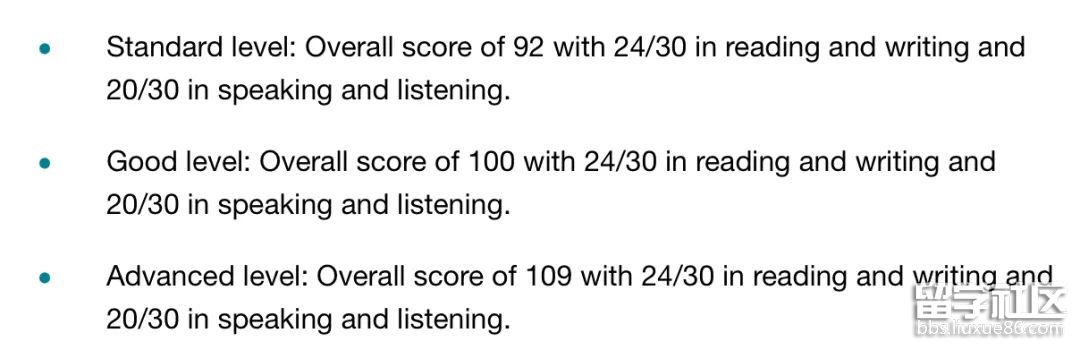 ● 托福:不低于92,讀寫不低于24分,聽說不低于20分