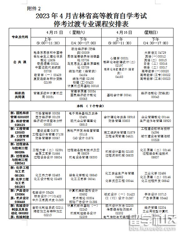 附件2:2023年4月吉林省高等教育自學(xué)考試停考過渡專業(yè)課程安排表