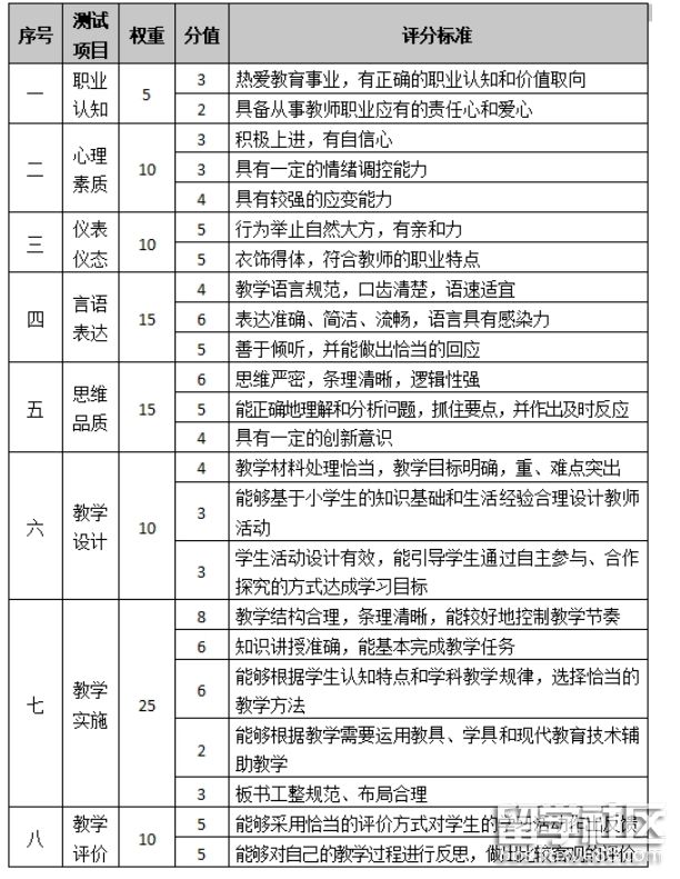 2022年下半年的教師資格證考試目前已經(jīng)完成了筆試科目的考試,正在進(jìn)行著面試階段的考前準(zhǔn)備,大家在考試前需要及時(shí)了解考試的評(píng)分標(biāo)準(zhǔn),接下來(lái)小編就為大家?guī)?lái)2022年下半年教師資格證考試各學(xué)段面試考試評(píng)分標(biāo)準(zhǔn),一起來(lái)看看吧!