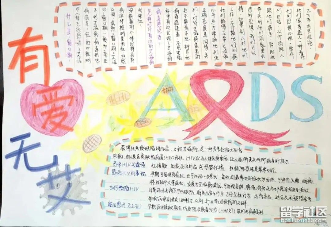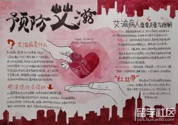 12月1日是世界艾滋病日,你了解什么是艾滋病嗎?讓我們一起制作一份手抄報(bào)宣傳防艾滋病知識(shí),關(guān)愛艾滋病患者吧!以下是由出國(guó)留學(xué)網(wǎng)小編為大家精心整理的“世界艾滋病日手抄報(bào)圖片大全(最新5張)”,僅供參考,希望能夠幫助到大家。