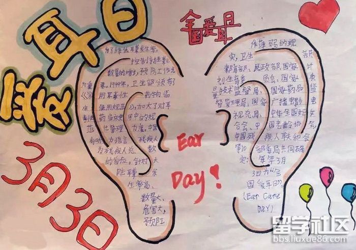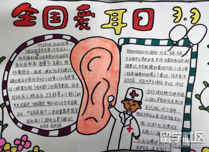 3月3日是全國(guó)愛(ài)耳日。耳朵是人的重要感覺(jué)器官之一,鳥(niǎo)語(yǔ)花香,山呼海嘯,都必須經(jīng)過(guò)耳朵才能感受到,沒(méi)有聽(tīng)力,語(yǔ)言交流就無(wú)從談起。兒童正處于語(yǔ)言的形成期,因此,保護(hù)聽(tīng)力更顯得尤為重要。下面是由出國(guó)留學(xué)網(wǎng)編輯為大家整理的“3.3全國(guó)愛(ài)耳日手抄報(bào)模板精選6張”,僅供參考,希望能夠幫助到大家。