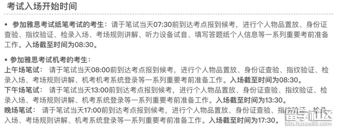 因此大家一定要預(yù)留好足夠的時(shí)間(一般30分鐘左右),也提醒參考口語考試的同學(xué),入場時(shí)間是考前30分鐘到達(dá)考場,截止時(shí)間為考前15分鐘。