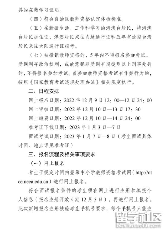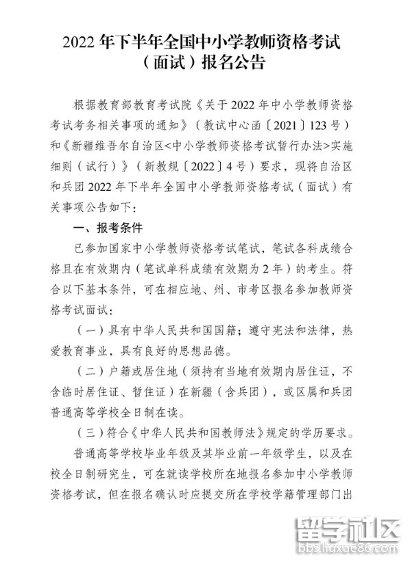 新疆自治區(qū)2022年下半年中小學(xué)教師資格考試面試的報(bào)考時(shí)間、報(bào)考條件、流程等考試相關(guān)安排已經(jīng)公告出爐了,詳細(xì)的面試報(bào)名公告如下,下面是出國(guó)留學(xué)網(wǎng)整理的“2022年下半年全國(guó)中小學(xué)教師資格考試(面試)報(bào)名公告”,供新疆考生參考閱讀。