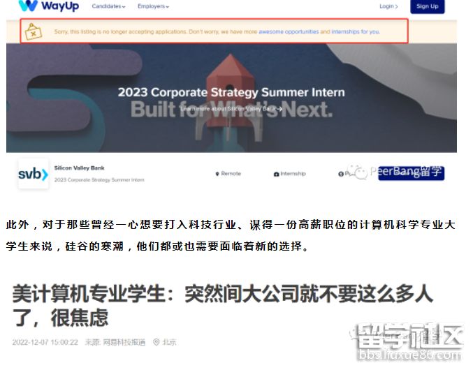 隨著硅谷銀行的破產(chǎn),今年提供給在校生的實習(xí)申請通道也緊急關(guān)停了。