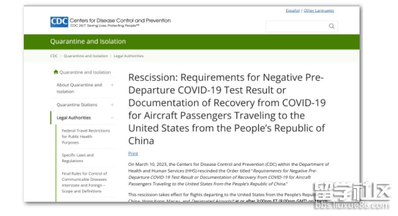 2023年3月10日,美國衛(wèi)生與公眾服務(wù)部(HHS)下屬的疾病控制與預(yù)防中心(CDC)撤銷了對從中國前往美國乘客需提交核酸陰性檢測結(jié)果的要求。