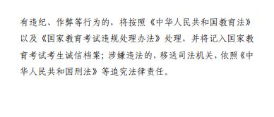 心懷敬畏,誠實應(yīng)考。 希望你們遵守考試紀(jì)律,保持良好考試秩序,維護(hù)國家考試權(quán)威,維護(hù)考試公平,這是每一名考生應(yīng)盡的義務(wù)??荚嚽罢堈J(rèn)真閱讀《考場規(guī)則》,不將手表、手機(jī)等禁攜物品帶入考場??紙鰞?nèi)已配有時鐘,手機(jī)請按照要求服從考點統(tǒng)一管理??忌蛔袷乜紙鲆?guī)則,不服從考務(wù)工作人員管理,有違紀(jì)、作弊等行為的,將依規(guī)處理,并記入國家教育考試考生誠信檔案;涉嫌違法的,還會被追究法律責(zé)任(監(jiān)督舉報電話:0371-55610639)。