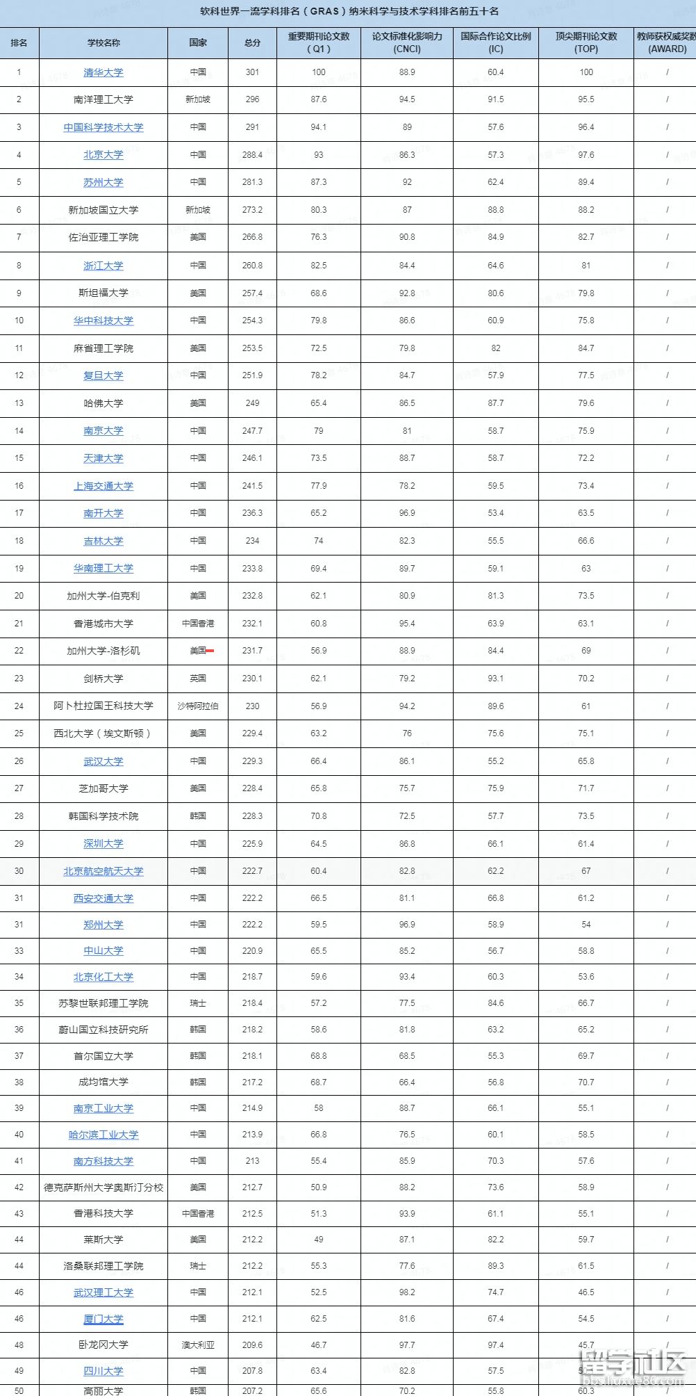 2022年納米科學(xué)與技術(shù)學(xué)科軟科世界大學(xué)排名前50: