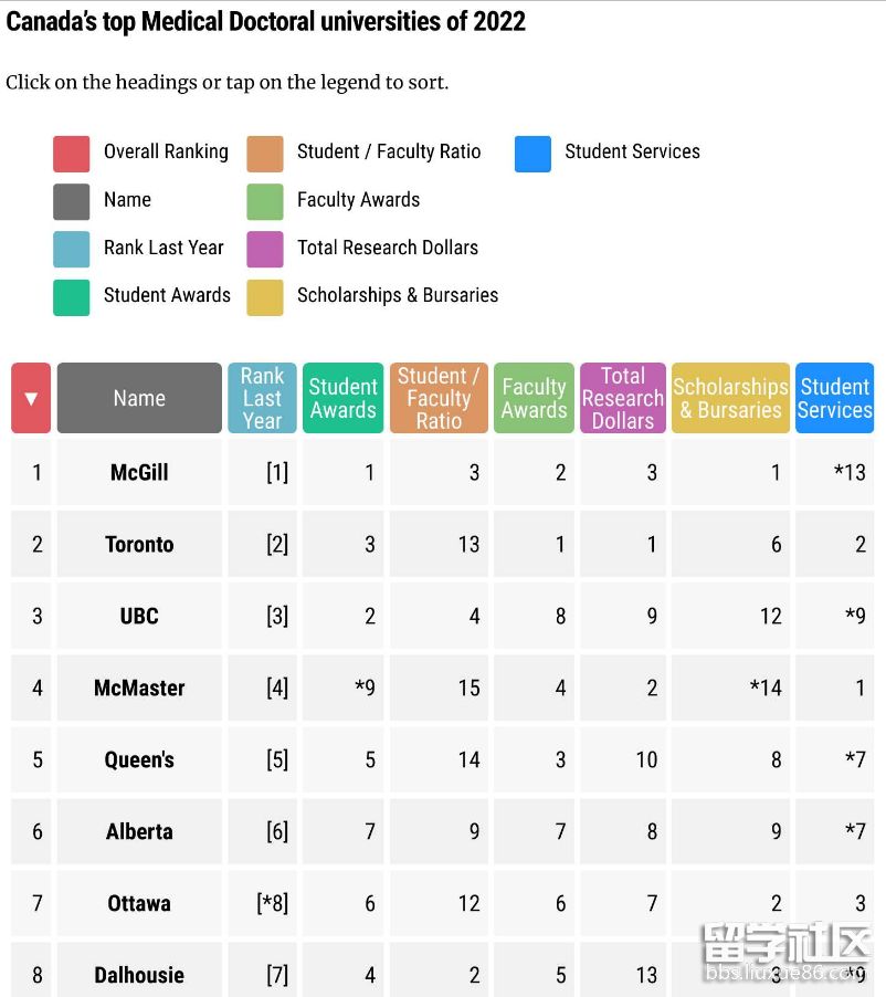 醫(yī)學(xué)(加拿大第6,世界第83)