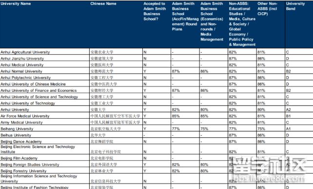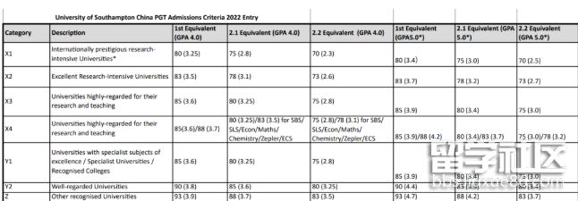 南安普敦大學(xué)將中國院校分為7檔,對每一檔院校背景的學(xué)生分?jǐn)?shù)要求不同。