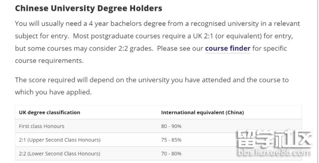 授課型碩士專業(yè)要求英國本科的高等2:1學(xué)位,對應(yīng)國內(nèi)本科: