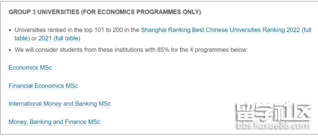 伯明翰新加了一個經(jīng)濟/非經(jīng)濟課程的劃分,等于給院校背景偏后、想申經(jīng)濟學(xué)課程的同學(xué)放寬了機會~