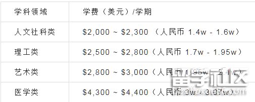 科系不同,學(xué)費(fèi)略有不同??傮w每學(xué)期的學(xué)費(fèi)價(jià)格大約在人民幣 1.4 萬元 - 3.07 萬元之間: