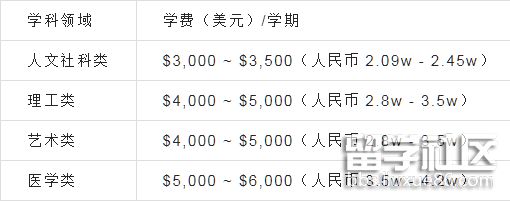 同樣根據(jù)科系不同,學(xué)費(fèi)價(jià)格不同,大致在人民幣 2.09 萬元 - 4.2 萬元之間: