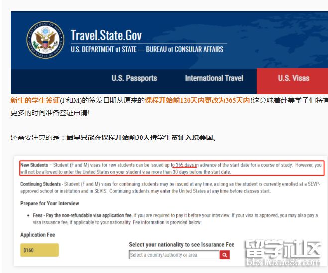 美國國務(wù)院領(lǐng)事事務(wù)局網(wǎng)站中關(guān)于學(xué)生簽證申請的信息有重要更新!