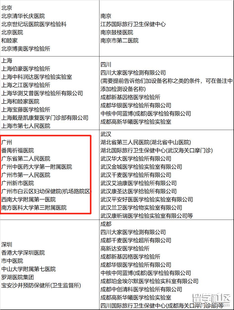 全國部分城市可以出具英文核酸檢測報(bào)告的醫(yī)院/機(jī)構(gòu)名單,供大家參考:
