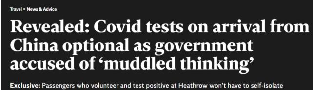 前兩天英國政府突然宣布,自2023年1月5日起,從中國大陸抵達(dá)英格蘭的旅客需要出示兩日內(nèi)新冠核酸檢測陰性證明。
