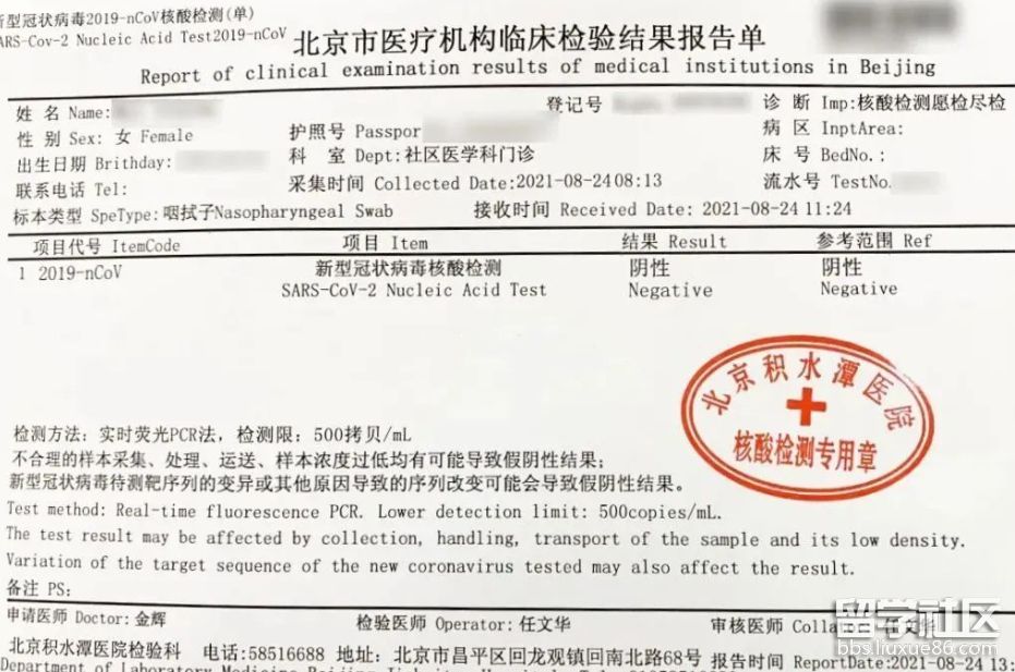 北京積水潭醫(yī)院核酸檢測報(bào)告單示例